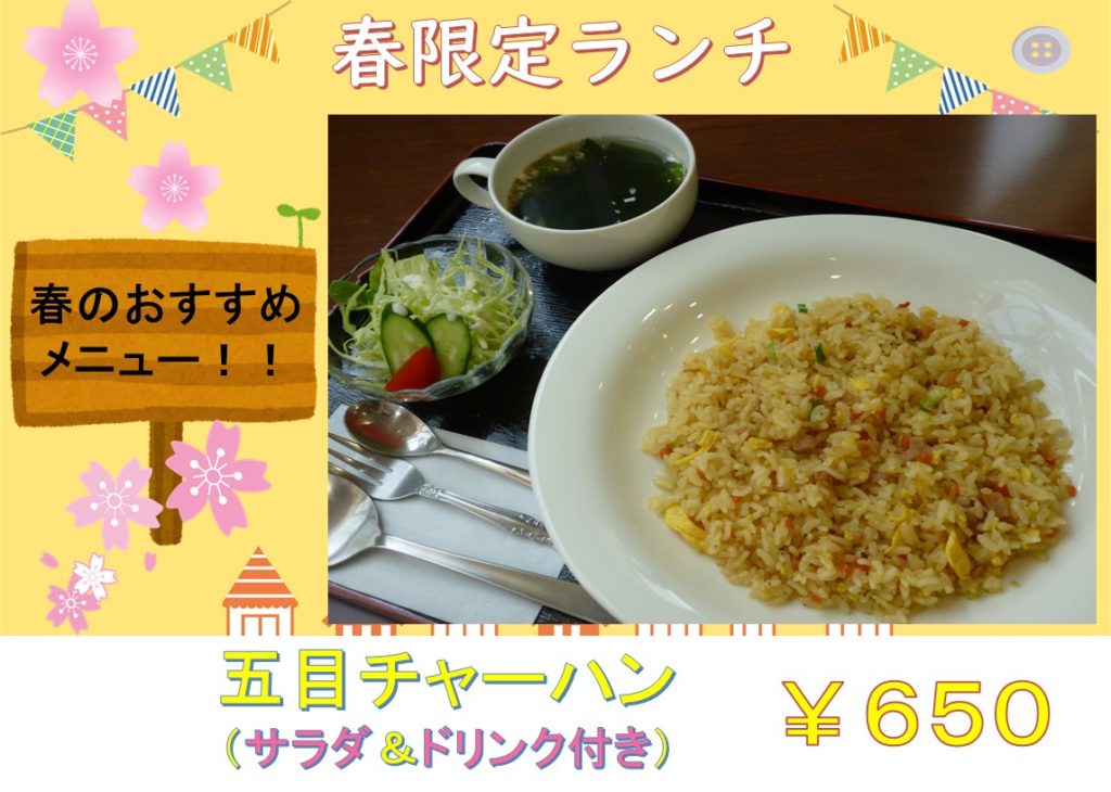 2022年3月30日 / 最終更新日時 : 2022年3月30日 桂の泉学園 喫茶いづみ 「喫茶いづみ」春限定メニュー登場 いつも喫茶いづみをご利用いただきありがとうございます。桜も咲きはじめすっかり春めいてきましたね。喫茶いづみでは春限定メニュー「五目チャーハン」が登場いたしました。是非お近くにおいでの際はお立ち寄りくださいませ。 コメントを残す コメントをキャンセルメールアドレスが公開されることはありません。 ※ が付いている欄は必須項目ですコメント ※ 名前 ※ メール ※ サイト 次回のコメントで使用するためブラウザーに自分の名前、メールアドレス、サイトを保存する。 Δ